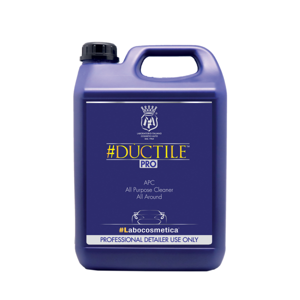 Labocosmetica Ductile är ett koncentrerat allrengöringsmedel med imponerande egenskaper. Det kan användas såväl på bilens insida som utsida. Rengör effektivt textilier, plast och gummi och gummi. Den har även ingredienser som eliminerar oönskad lukt inne i bilen. På utsidan kan Ductile användas på t.ex. kaross, fälgar, motorn, lister m.m.