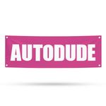 Autodude-banderollen är en slitstark, vädertålig och iögonfallande banderoll för dig som älskar bilvård, bilträffar och garagehäng. Den har en kraftfull rosa bakgrund och en vit Autodude-logga snyggt centrerad i mitten – en färgkombination som garanterat väcker uppmärksamhet både i butiksmiljö och ute på event. Tillverkad i högkvalitativ meshduk som klarar alla väderlekar. Perfekt som garagebanderoll, reklambanderoll, mässmaterial eller dekor på bilträffar och event.