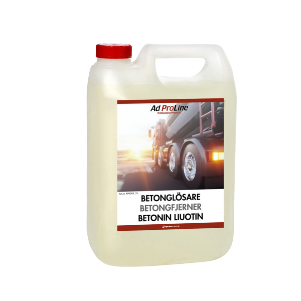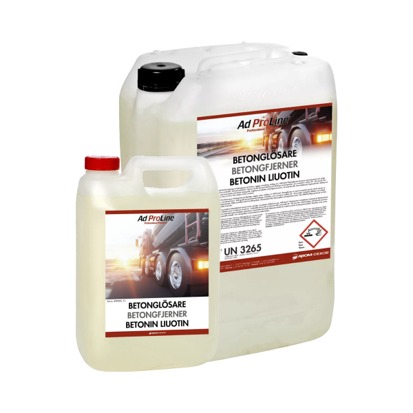 AdProLine Betonglösare är ett mycket effektivt medel för borttagning av betongrester på fordon, utrustning, verktyg, väggar mm. AdProLine Betonglösare är betydligt mindre aggressiv och korrosiv jämfört med traditionella syror. Klarar även att lösa tjocka lager av betongrester.