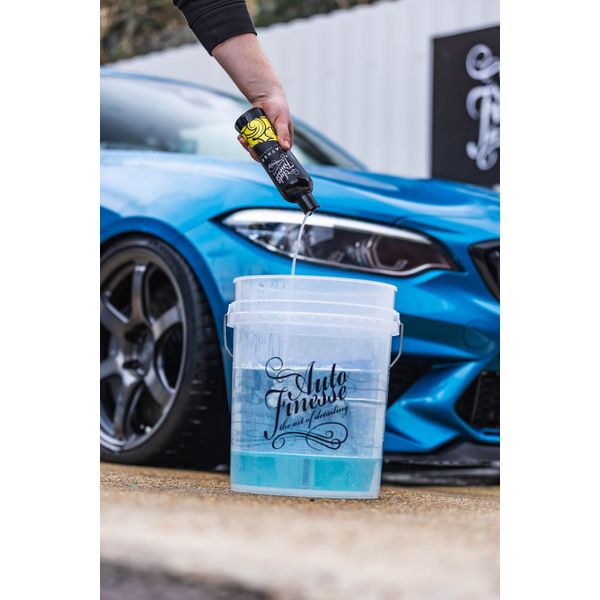 Auto Finesse Lather är ett vaxsäkert, bilschampo med en god doft av mandarin som lämpar sig perfekt för underhållstvätt. Auto FInesse Lather bildar ett fint skum som inte innehåller vax eller glansförbättrande ingredienser utan fokuserar sig endast på en effektiv rengöring, vilket gör det lämpligt för en tvätt före vaxning av bilen. Eftersom bilschampot är högskummande skapas en hal yta mellan lacken och tvätthandsken, vilket gör att den glider fint mot ytan och risken för tvättrepor minskar. Auto Finesse Lather är pH-neutralt.