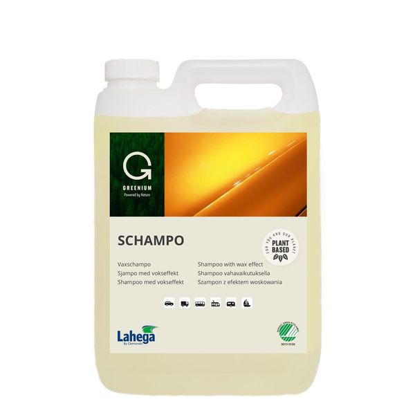 Lahega Greenium Schampo är ett högeffektivt skummande schampo med vaxeffekt. Schampot avlägsnar snabbt vägdamm, trafiksmuts och insekter och efterlämnar en blank och smutsavvisande yta. Ger en fin avrinning. Parfymerad.