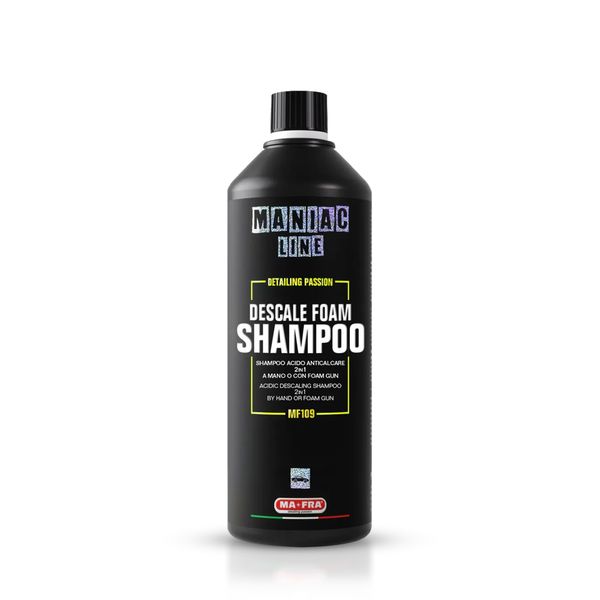 Descale Foam Shampoo är ett specialanpassat bilschampo utvecklat för att lösa upp mineralavlagringar som kalkfläckar, intorkade vattenstänk och rester från sandregn. Det är ett idealiskt val för både grundlig rengöring inför polering och för att återställa prestandan hos befintliga lackskydd. Descale Foam Shampoo kan användas som ett traditionellt bilschampo med tvätthandske och hink, men också som ett förtvättsmedel med skumtryckspruta eller foam lance.