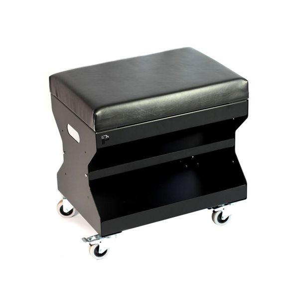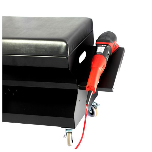 Högkvalitativ bilvårdspall som gör fordonsarbetet ergonomiskt och bekvämt! Mjuk och stabil sits, låsbara hjul. Två hyllplan under sitsen för förvaring av tillbehör.