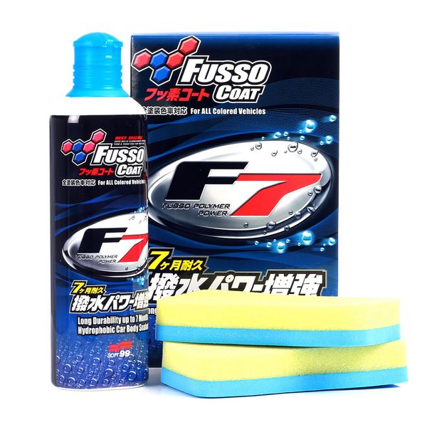 Soft99 F7 Fusso Coat är ett mycket bra och lättanvänt flytande vax. F7 ger en otrolig vattenavvisande yta och hållbarheten är nära inpå lika bra som för hårda vax. Fördelen med ett flytande vax är självklart att det är lätt att arbeta med. Användningen med det flytande F7-vaxet är extremt lätt och enkelt att applicera jämfört med hårda vax. Även spridningen och polering av medlet är mycket enkelt i jämförelse med många liknande produkter. Den avvisande ytan som vaxet lämnar förhindrar att smuts fastnar på lacken. Soft99 lovar en hållbarhet upp till hela 7 månader. Förutom lackade ytor är F7 även lämplig för satin och matta ytor, vilket gör den extremt mångsidig. VI REKOMMENDERAR!