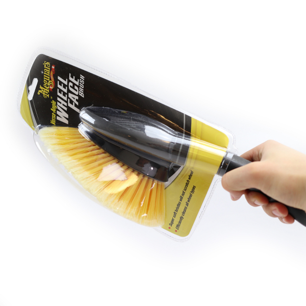 Meguiars Versa Angle Wheel Face Brush är en stor borste som funkar bra till både fälgarna och däcken. De mjuka stråna gör att den är skonsam även med de mest känsliga fälgarna.