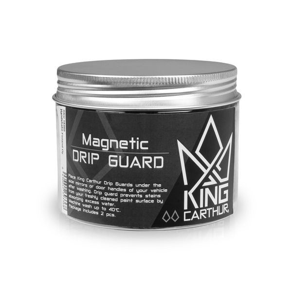 King Carthur Magnetic Drip Guard är magnetiska droppskydd i praktiskt format, designade för att fästas under sidospeglarna, regskylten, dörrhandtagen etc. för att säkerställa ett perfekt slutresultat. Magnetic Drip Guard kan exempelvis användas före polering, då vibrationerna från polermaskinen får smuts och vatten att rinna ut. Magnetic Drip Guards är tillverkade av samma högkvalitativa och mjuka mikrofibermaterial som King Carthurs mest kända och högabsorberande torkduk Black Diamond, så trots den lilla storleken på mikrofiberskydden kan de absorbera en stor mängd vatten. Därmed kan de sättas på plats direkt efter tvätt, utan att du behöver "förtorka" innan. Dessa droppskydd är kort sagt en enkel men perfekt precisionslösning för varje bilvårdare som stör sig på att vattendroppar från exempelvis sidospeglarna rullar ner för den den nytorkade lackytan och förstör tvättresultatet!