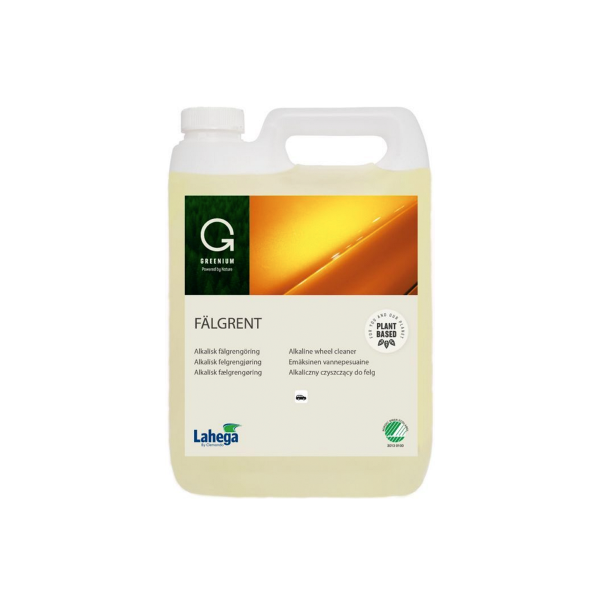 Lahega Greenium Fälgrent är ett kraftfullt rengöringsmedel för fälgar och hjulsidor. Fälgrengöringen är baserad på hållbara, vegetabiliska och förnyelsebara råvaror. Kan användas på plast samt lackerade aluminium- och stålfälgar. Avlägsnar effektivt bromsdamm och annan ingrodd smuts från fälgen.