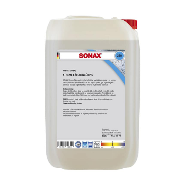 Sonax Extreme är en fälgrengöring som effektivt avlägsnar smuts som bromsdamm, olja och gummirester från alla fälgar. En mycket omtyckt och positivt omtalad produkt i Sverige. Maximal rengöring av fälgytan. Denna fälgrengöring är syrafri och fräter inte på fälgar och metalldelar.