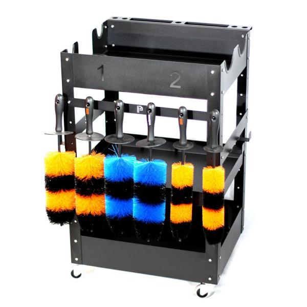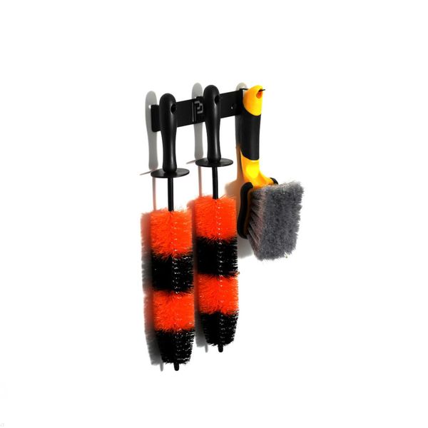Poka Premium Brush Holder är ett mycket praktiskt väggfäste för tvättborstar, penslar eller till exempel för att torka trasor. En hållare som denna gör det enkelt att skapa ordning och reda i bilvårdsutrymmet, samtidigt som dina borstar förvaras på ett säkert och hygieniskt sätt – utan risk att borsthåren skadas eller deformeras. Hållaren finns i varianter för två, tre eller sex borstar, vilket gör den flexibel för både små och stora uppsättningar av rengöringsverktyg. Den smarta designen med böjda krokar hindrar borstarna från att glida av, och de runda öppningarna i toppen tillåter montering av borstar med både raka och något böjda handtag.