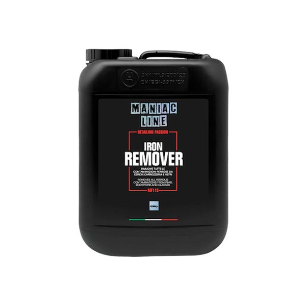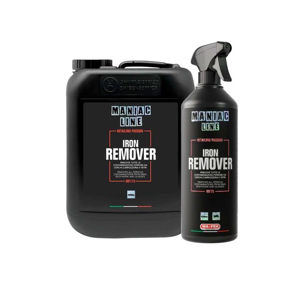 Mafra Maniac Iron Remover är en syrafri och pH-neutral flygrostlösare som tar bort bromsdamm och flygrost från lack, rutor och plast och gör ytan len. Lämplig för alla typer av fälgar, även kromfälgar och fälgar med obehandlad aluminium. Flygrostlösaren reagerar med järnpartiklar och blir mer lila allt eftersom den löser föroreningarna. För att öka effekten vid envis smuts kan man ta hjälp av en pensel på områden som är svåråtkomliga, framförallt på fälgar. Medlet är redo att användas men går även att blandas 1:1 vid underhåll.