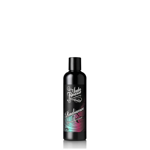 Auto Finesse Radiance Carnauba Créme är ett lättanvänt flytande bilvax innehållande äkta carnaubavax som är lämpligt för alla typer av lack. Radiance Carnauba Créme binder sig snabbt till bilens lack och ger ett skydd som kan hålla i upp till 3 månader, en fantastisk "wet look" glans och en imponerande vattenavrinning. Ytor som behandlats och skyddas av Auto Finesse Radiance Carnauba Créme får en fin hydrofob yta som effektivt stöter bort vatten och smuts och bidrar till bilens självrengörande egenskaper. Det flytande bilvaxet har utvecklats speciellt för dem som söker efter egenskaper som naturligt vax med carnauba brukar erbjuda men söker ett något mer lättapplicerat.