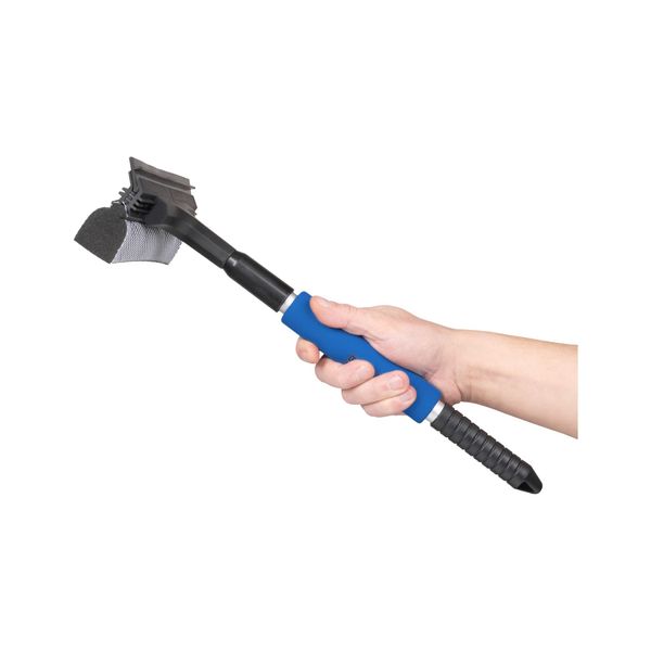 Teleskopskaftet gör att du slipper luta dig mot en smutsig bil eller sträcka dig i obekväma positioner; du når hela vindrutan enkelt och ergonomiskt. Dessutom gör teleskopfunktionen att fönsterskrapan tar minimalt med plats vid förvaring. Handtaget är vadderat i mjukt skumgummi för bästa komfort och har ett praktiskt hål för upphängning.