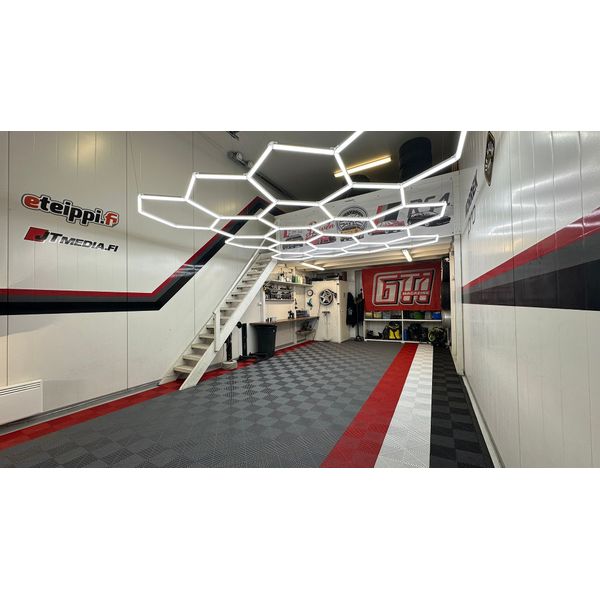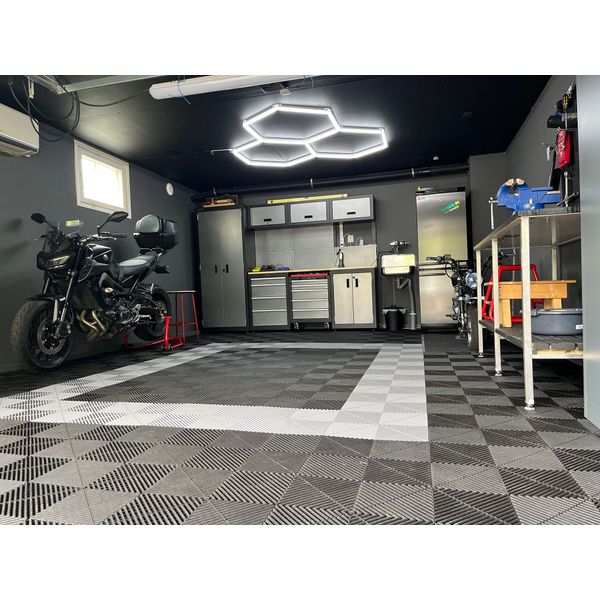 Dr Dirt Garage Plaza HD är ett modulärt garagegolv som ger en sofistikerad uppdatering till olika utrymmen, perfekt för både inomhus- och utomhusbruk. Garage Plaza HD kan användas för att ge garage, lager, terrasser och utställningslokaler ett stilrent utseende, och deras syfte är också att göra arbete och förflyttning enklare. Den unika strukturen på plattorna och den halkfria ytan förhindrar att vatten samlas på plattorna och garanterar utmärkt grepp även när plattorna eller skorna är våta. Tack vare de stora vattenrännorna transporteras vattnet och sanden som rinner under plattorna lätt ner i brunnen och smuts.