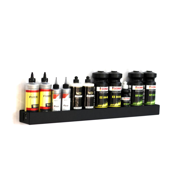 Poka Premium Bottle Tray är en smidig och lättplacerad vägghylla, framtagen för att ge platsbesparande och stilren förvaring i polerrum, garage eller bilvårdsanläggningar. Hyllan är tillverkad i pulverlackerat stål, vilket ger ett lätt men ändå stabilt utförande som passar utmärkt för förvaring av polermedel, detaljprodukter och tillbehör. Med sin öppna och enkla design blir det lätt att snabbt komma åt produkterna du använder mest. Hyllan finns i två storlekar. 40 eller 80 cm. Tack vare den raka formen och avsaknaden av frontkant är det även enkelt att torka ur hyllan vid behov.