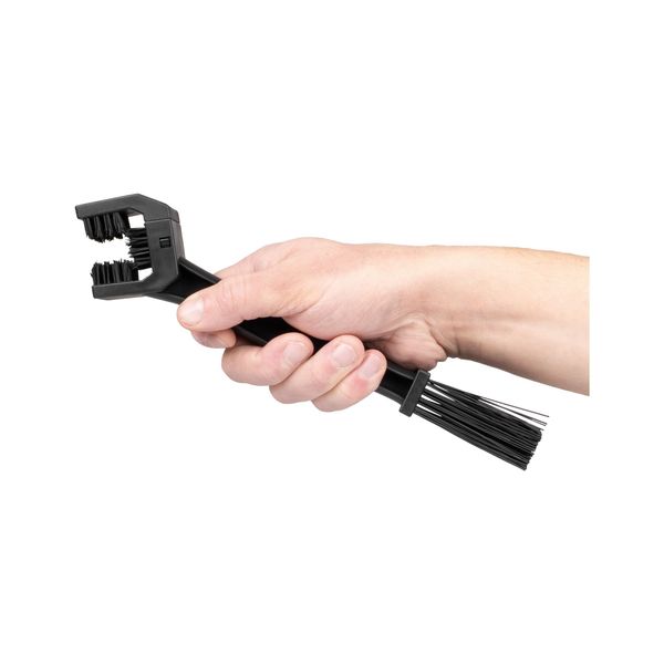 Lätt och ergonomisk kedjeborste för rengöring av kedjor på t.ex. motorcykel, moped eller cykel. Den tredelade borsten rengör effektivt kedjan från alla sidor samtidigt, medan de långa borsten i andra änden är idealiska för detaljerad rengöring av drev och andra trånga utrymmen.