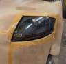 Ta bort strålkastarna från bilen om möjligt. Rengör ytan som ska behandlas noggrant för att avlägsna lös smuts från ytan. Om lampan inte kan tas bort, skydda noggrant de omgivande områdena med t.ex. tejp och tidningspapper för att förhindra att sandpapper gnids mot färgytan och att lacken fastnar på ytorna. Undersök ytan för defekter: lamphuset är något blekt, räcker en lätt slipning och vid grövre repor krävs då också ett grövre sandpapper för att avverka djupa repor.