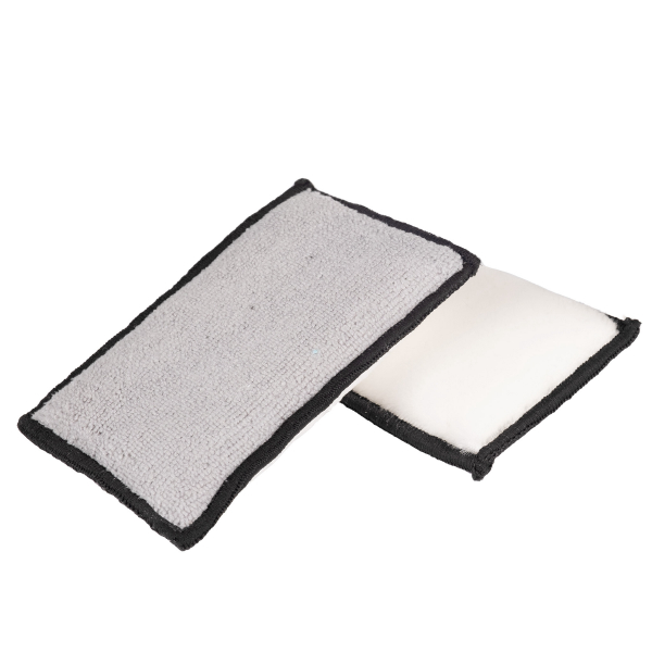 Innovativ, dubbelsidig kombinerad tvättsvamp och vaxapplikator. Ena sidan är gjord av skonsam mikrofiber, den andra är i ett borstmaterial för rengöring av ytor.