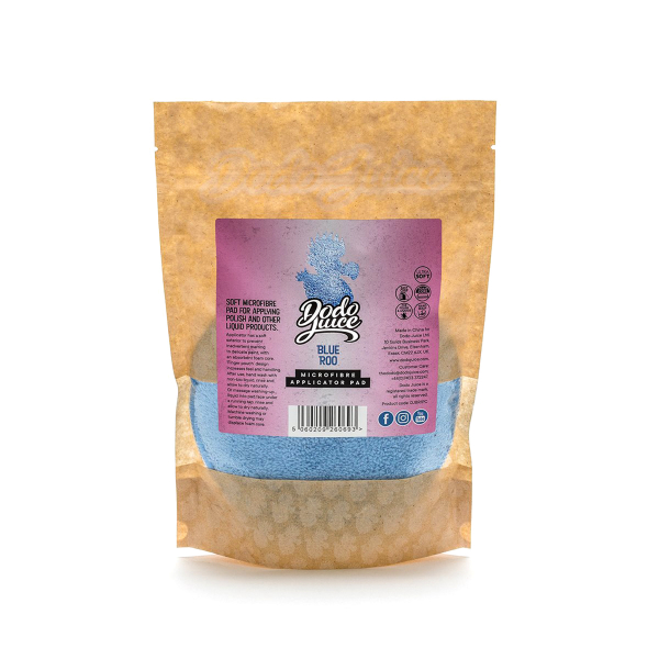 Dodo Juice Blue Roo är en mycket mjuk appliceringssvamp med extremt tjock och lång mikrofiber. Appliceringssvampen har en smidig ficka för fingrarna, vilket ger ett extra grepp och ökad precision. Appliceringssvampen är gjord av mikrofiber och elastisk bomull vilket ger en mjuk och fluffig arbetsyta som agerar mycket skonsam vid exempelvis applicering av vax eller handpolering.