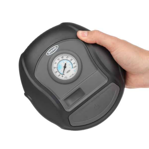 100PSI 120W (100 Psi (Psi) = 6.9 Bar)Placera kompressorn på ett jämt underlag. Rulla ut strömkabeln och anslut till 12V uttaget i bilen. Dra ut luftslangen och montera den på däcket. Tryck på startknappen för att starta kompressorn och kontrollera aktuellt lufttryck på mätaren. Stäng av kompressorn när aktuellt lufttryck av uppnåtts. Gå vidare till nästa däck och upprepa processen. Avlägsna sedan slang och strömkabel och virra upp strömkabeln med hjälp av vindan på baksidan.