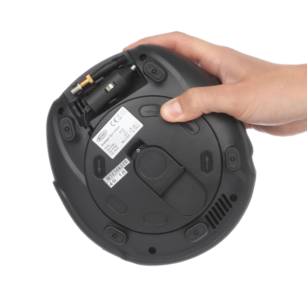 Prisvärd portabel luftkompressor som man enkelt förvarar och använder direkt från bilen strömkälla. Perfekt som backup eller för att kontrollera lufttrycket vid däckbyte på vår och höst. Däckkompressorn är utrustad med 3 meter lång kabel, vilket gör att du enkelt når alla däck runt bilen. Drivs direkt från 12V uttaget i bilen. Tre olika adaptrar medföljer för att även kunna pumpa cykeldäck, luftmadrasser, bollar och mycket mer. Enkel att använda!