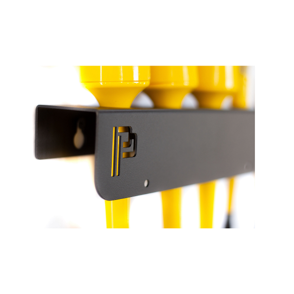 Praktisk hållare för olika penslar och borstar! Finns i två storlekar, antingen 400 eller 800 mm bred. Hållaren är tillverkad i slitstarkt stål och kan enkelt fästas på väggen.