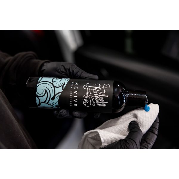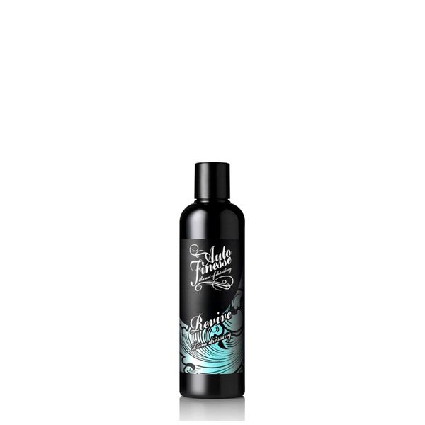 Auto Finesse Revive Trim Dressing ger liv och skydd åt slitna plast-och gummiytor. Den behandlade ytan blir mörkare och återfår sin fräscha ursprungslook. Revive efterlämnar en yta som ser ny ut, men som är torr och inte rinner av vid första regndroppen.