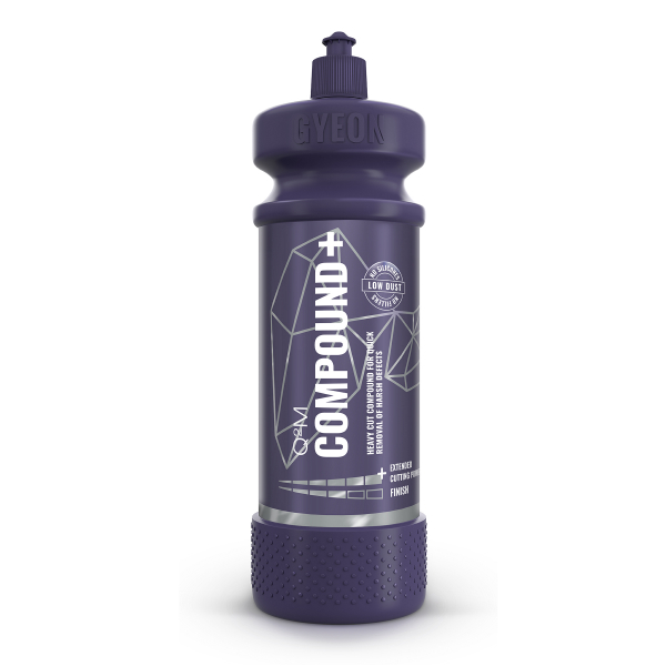 Gyeon Q²M Compound+ är en grövre variant av Q²M Compound och är framtagen för att verkligen få bort alla repor från tvätt och slitage på hårdare lacker. Den är väldigt kornig i känslan och fungerar på även de mest envisa ytorna. Trots grovheten lämnar den förvånansvärt lite polerroser samt dammar väldigt lite, detta underlättar i senare steg av poleringsprocessen. Medlet är vattenbaserat samt fritt från fillers och silikon. På grund av sin slipningsgrad kräver bearbetad yta efterbehandling med Gyeon Q²M Polish, Finishing.