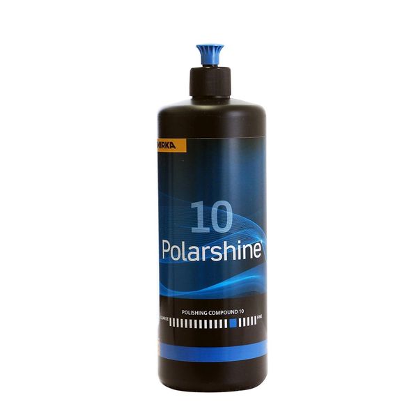 Mirka Polarshine 10 är ett silikonfritt, medelgrovt polermedel / rubbing, som lämpar sig för alla typer av polermaskiner. Bra val för "en-stegs"-behandling. Denna produkt lämpar sig väl för alla typer av lackade ytor, från extremt mjuka till hårda. Vid användning med polermaskin får man en effektiv men försiktig slipning av lacken upp till P2500 slipgrad. Kan även användas förhand. Används tillsammans med ull, skumrondell eller mikrofiber. Vi rekommenderar!