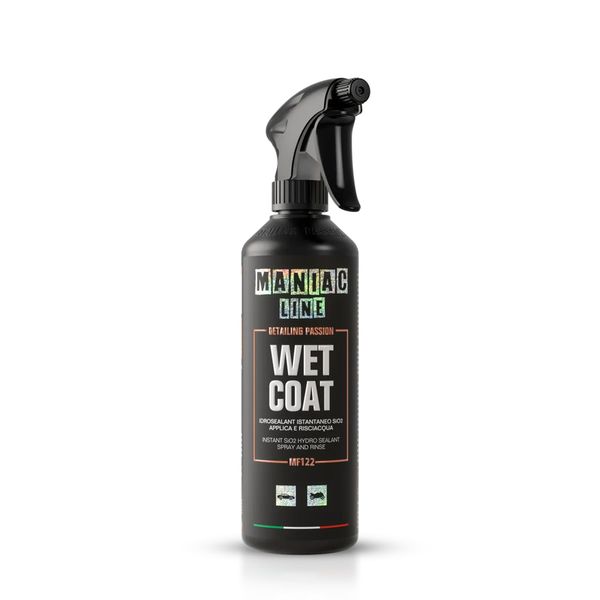 Mafra Maniac Wet Coat är en högpresterande snabbförsegling utvecklat för dig som vill ha maximal glans och extrem avrinning med minimal ansträngning. Tack vare modern "wipeless"-teknologi krävs varken avtorkning eller polering – spraya bara produkten direkt på den våta ytan och skölj av för ett omedelbart resultat. Medlet innehåller nanopolymerer och nanokeramisk teknologi som skapar ett hydrofobiskt skydd som stöter bort vatten och smuts, vilket håller bilen ren längre och underlättar framtida tvättar. Wet Coat är säker att använda på lack, glas, plast, fälgar och krom, och ger ett hållbart skydd i upp till 2 månader eller cirka 4 tvättar.