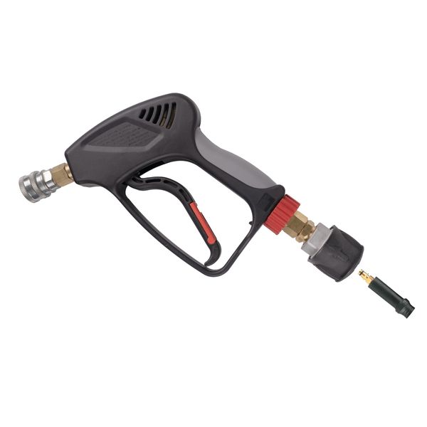 Dr Dirt Pressure Gun G3, Kärcher K är ett behändigt paket designat för Kärchers högtryckstvättar i K-serien, vilket gör högtryckstvätten kompatibel med tillbehör utrustade med en SnapLock™ snabbkoppling. Paketet innehåller ett kort spolhandtag för högtryckstvätt med en SnapLock™ snabbkoppling och en adapter för att ansluta trycktvättens tryckslang till spolhandtaget med G3-koppling. Tack vare handtagets snabbkopplingsfunktion kan högtryckstvätten konverteras till att fungera med en snabbkoppling, så att byte av olika tillbehör, såsom Foam Lance och spolrör, under tvätten. Själva handtaget är försett med en fast roterande koppling, som förhindrar att slangen vrider sig vid användning, för en krångelfri tvätt. Det korta handtaget är idealiskt särskilt när bilen tvättas i trånga utrymmen där det är svårt att arbeta med ett långt handtag. Dessutom är det korta handtaget enkelt att hantera och väldigt lätt vilket gör den till en ännu uppskattad arbetskamrat!