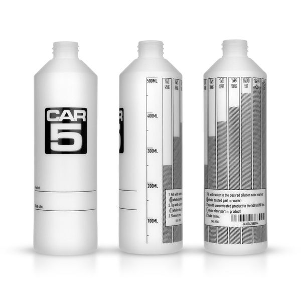CAR5 har nu tagit fram en mycket smart sprayflaska med tydliga doseringsmått angivet på flaskan för att du på en enkelt sätt ska kunna späda ut koncentrerade medel enligt anvisningarna på förpackningen för respektive produkt. Denna flaska kommer hjälpa dig att spara massor av medel - och pengar! Dessutom är den på ett sätt mer miljövänlig efter som det är en sprayflaska av högre kvalitet som går att använda många gånger, och som också