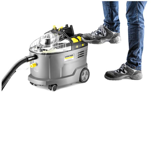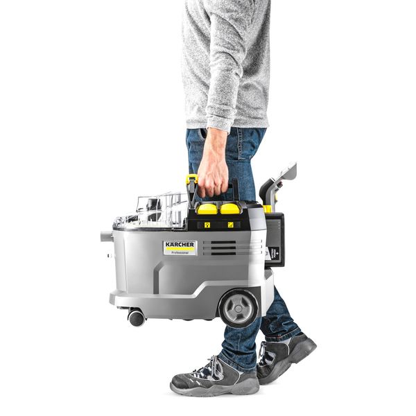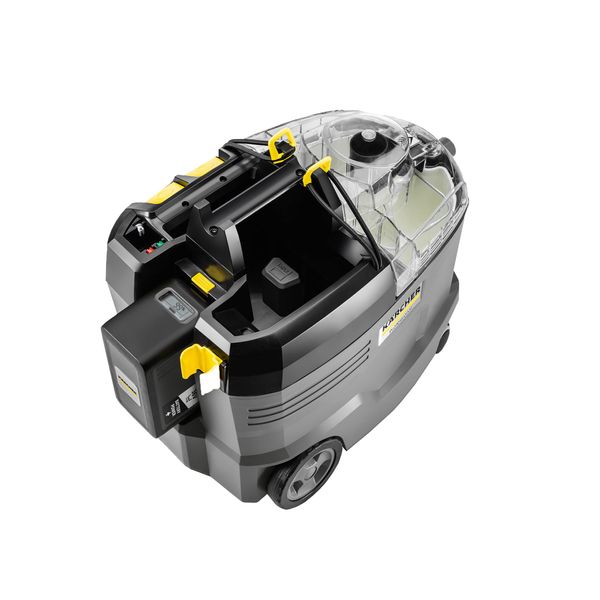 Kärcher Puzzi 9/1 Bp Pack är en batteridriven textilvårdsmaskin designad för professionell användning, som inte behöver en separat strömkälla för att fungera. En batteridriven maskin är särskilt praktisk i situationer där ström inte är lättillgänglig, till exempel när du rengör utemöbler utomhus, när du tvättar insidan av ett fordon på en parkeringsplats eller när du arbetar i andra utrymmen där det inte finns några eluttag inom räckhåll. En sladdlös textilvårdsmaskin är också till stor hjälp när du arbetar i trånga utrymmen eller i jobb som kräver mycket rörelse, eftersom du inte behöver lägga tid på att leta efter uttag och därmed inte behöver ta hänsyn till maskinens räckvidd!