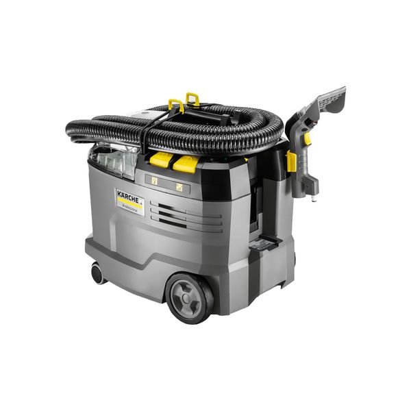 Textilvårdsmaskinen är en snabb och effektiv lösning för rengöring av mattor, tygklädda möbler, bilbarnstolar och interiörklädsel. Tack vare den effektiva sugfunktionen torkar ytorna snabbt och är klara att användas inom kort, så tvättmaskinen är utmärkt för användning av såväl proffs inom städbranschen, som för reparatörer på bilverkstäder, samt som utrustning för buss och taxibolag. Denna modell levereras som standard med möbelmunstycke, vilket är en ny, kort modell som kan fästas direkt på sugrörets ände. Den kompakta storleken och det ergonomiskt utformade handmunstycket gör det lättare att arbeta i trånga utrymmen, till exempel vid rengöring av bilstolar. Textilvårdsmaskinen, inklusive vattentankarna, är designad för intensiv professionell användning, med volymen på renvattentanken på 9 liter och smutsvattentanken på 7 liter.