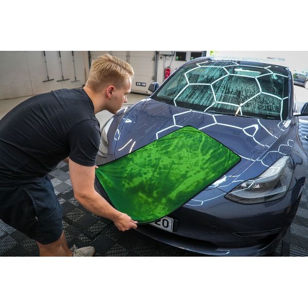 King Carthur Green Jade glider lätt över ytan, vilket gör torkningen enkel och effektiv. Trots sin tunna och lätta struktur har Green Jade en imponerande torkkraft, vilket gör att den kan absorbera stora mängder vätska utan att behöva bytas ut eller vridas ur. Med en tjocklek på 600 GSM har Green Jade en hög absorptionsförmåga som gör att den snabbt kan torka stora fordon utan att lämna vattendroppar eller ränder efter sig. Dess generösa storlek på 60 x 90 cm gör att den kan täcka stora ytor och effektivt torka av hela fordonet på kort tid.