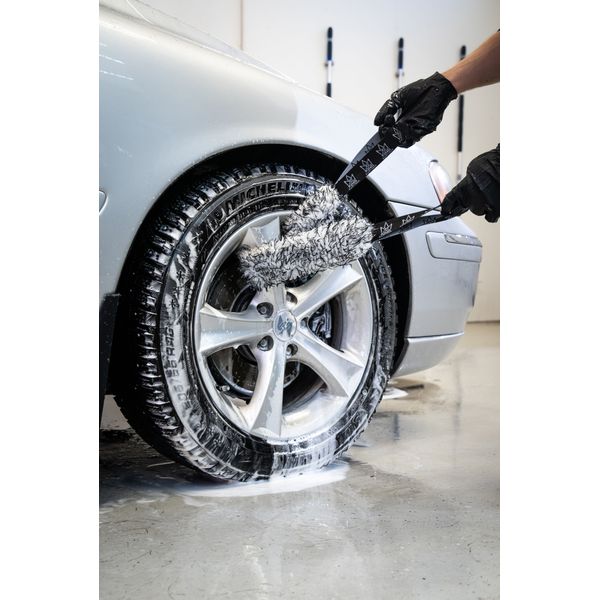 King Carthur Slim Wash Cloth är ett slitstarkt och skonsamt mikrofiberverktyg särskilt utformat för fälgtvätt. Den innovativa Slim Wash Cloth gör det extremt enkelt att rengöra fälgar och ekrar, tack vare dess långa och smala design som kan lindas runt ekrarna för att nå även baksidorna utan ansträngning. Till skillnad från en traditionell tvättsvamp absorberar mikrofiberstråna effektivt in smutspartiklar i tyget, vilket förhindrar att smuts och grus repas runt på ytan. De långa syntetiska mikrofiberstråna är mycket skonsamma även mot känsliga ytor och är betydligt mer tåliga mot kemikalier och slitage än exempelvis naturliga material så som ull. Slim Wash Cloth klarar därmed både skonsam underhållstvätt och grundlig rengöring med lösningsmedel! Tack vare den smala designen passar Slim Wash Cloth även utmärkt för tvätt av exempelvis motorcyklar och mopeder. Dess maskintvättbara konstruktion gör den till en långlivad följeslagare för både entusiaster och professionella användare.