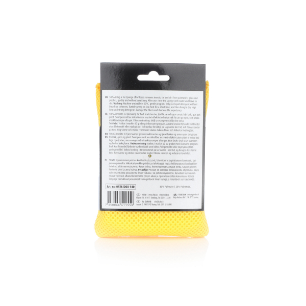 Sonax Bug & Tar Sponge är en effektiv tvättsvamp som biter bra på hårt sittande smuts. Tar enkelt bort insektsrester, tjärfläckar och grov smuts från lack, glas och plast. Svampens nät fångar effektivt upp smutsen, och tack vare att det är tillverkat i mikrofiber minskar risken för repor, vilket gör att svampen även kan användas på lacken.