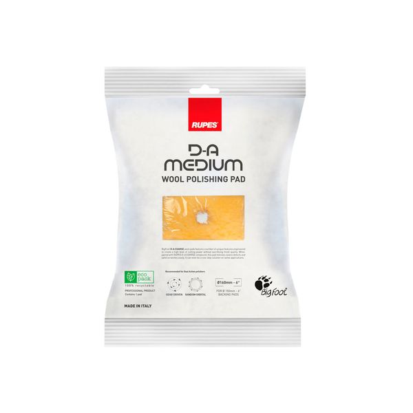 Rupes DA Medium Wool är en medelgrov ulltrissa designad för oscillerande maskiner. Ulltrissan är lämplig för att avverka måttliga repor och hologram. Medium Wool Pad är en uppdaterad version av tillverkarens populära Medium Wool Pad. Med sin uppdateringen har baksidan av trissan nu fått en ännu mer flexibel skumbas, vilket gör det lättare att bearbeta former och vinklar. Medium Wool pad använder 15 mm långa, mjuka och flexibla ullfibrer som i kombination med en skumbas garanterar avverkning av medeldjupa repor utan en allt för grov finish.