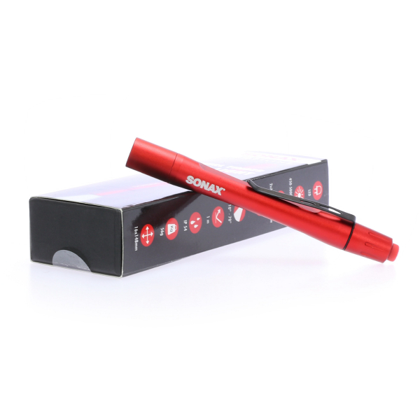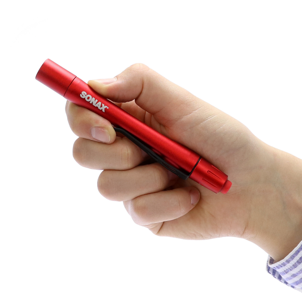 Sonax Profiline Swirl Finder Pen Light är en prisvärd, liten och smidig undersökningslampa i pennformat som används för att kontrollera lacken efter polering. Lampan ger ett starkt och fokuserat LED-ljus på 140 lumen och drivs av 2 st AAA-batterier (ingår ej).