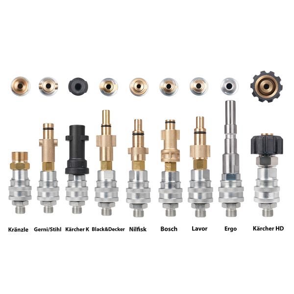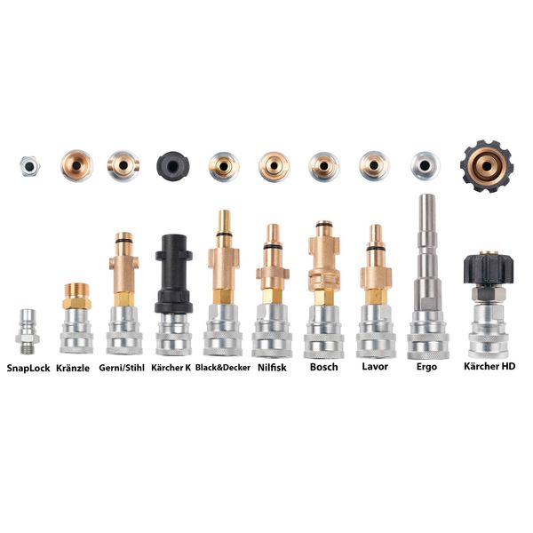 Obs! För att kontrollera adapterns lämplighet, koppla bort munstycket på din högtryck och jämför det med adaptrarna här nedanför. Längre ner på produktsidan finns även information om kompatibilitet med tvättar från exempelvis Clen, Stihl, Kränzle, Parkside, Biltema, mm.