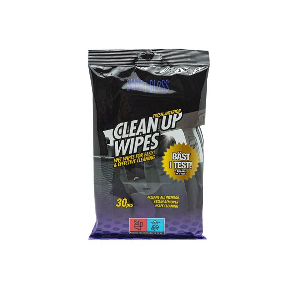 Glosser Fresh Clean-Up Wipes är våtservetter som kan användas på nästintill alla bilens ytor. Tar effektivt bort lättare smuts på t.ex. plast, textil, gummi och vinyl. Perfekt att ha som nödlösning i bilen, husvagnen, båten eller hemma. Burken innehåller 40 st dukar, i flatpacket ligger det 30 st.