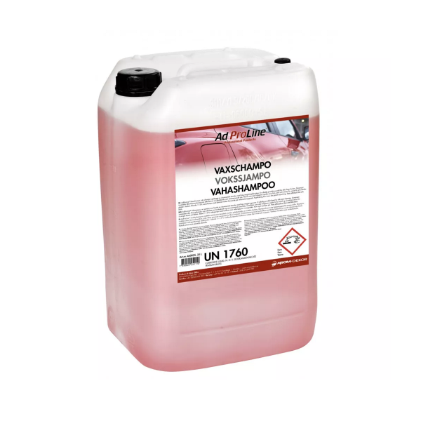 AdProLine Proline Vaxschampo är ett schampo för effektiv rengöring av bilar, lastbilar, truckar, maskiner etc. Proline Vaxschampo är uppbyggt av skummande tensider som ger en hög rengöringsförmåga. Funkar utmärkt även på våt lack och kan användas i både hårt och mjukt vatten.