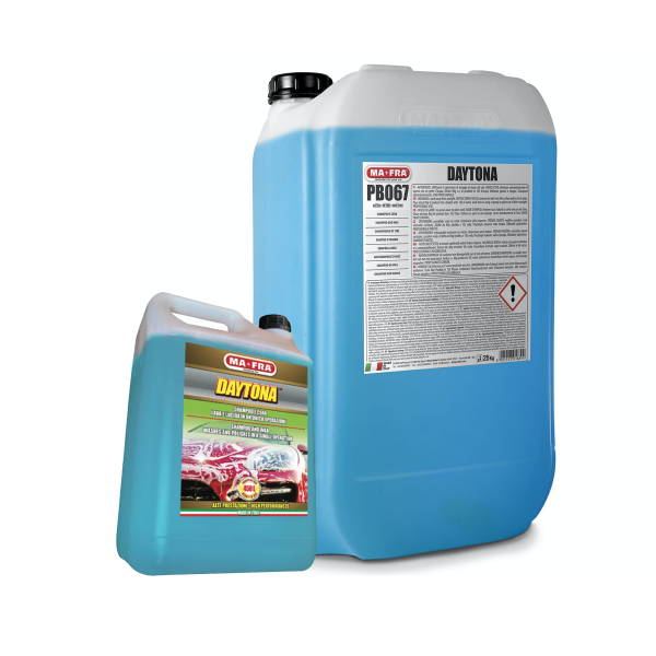 Mafra Daytona är ett pH-neutralt schampo som rengör grundligt och efterlämnar en skyddande, silkeslen hinna på lacken med fin glans och pärleffekt. Mafra Daytona innehåller högkvalitativa vegetabiliska vaxer och ger ett tätt och fint skum.